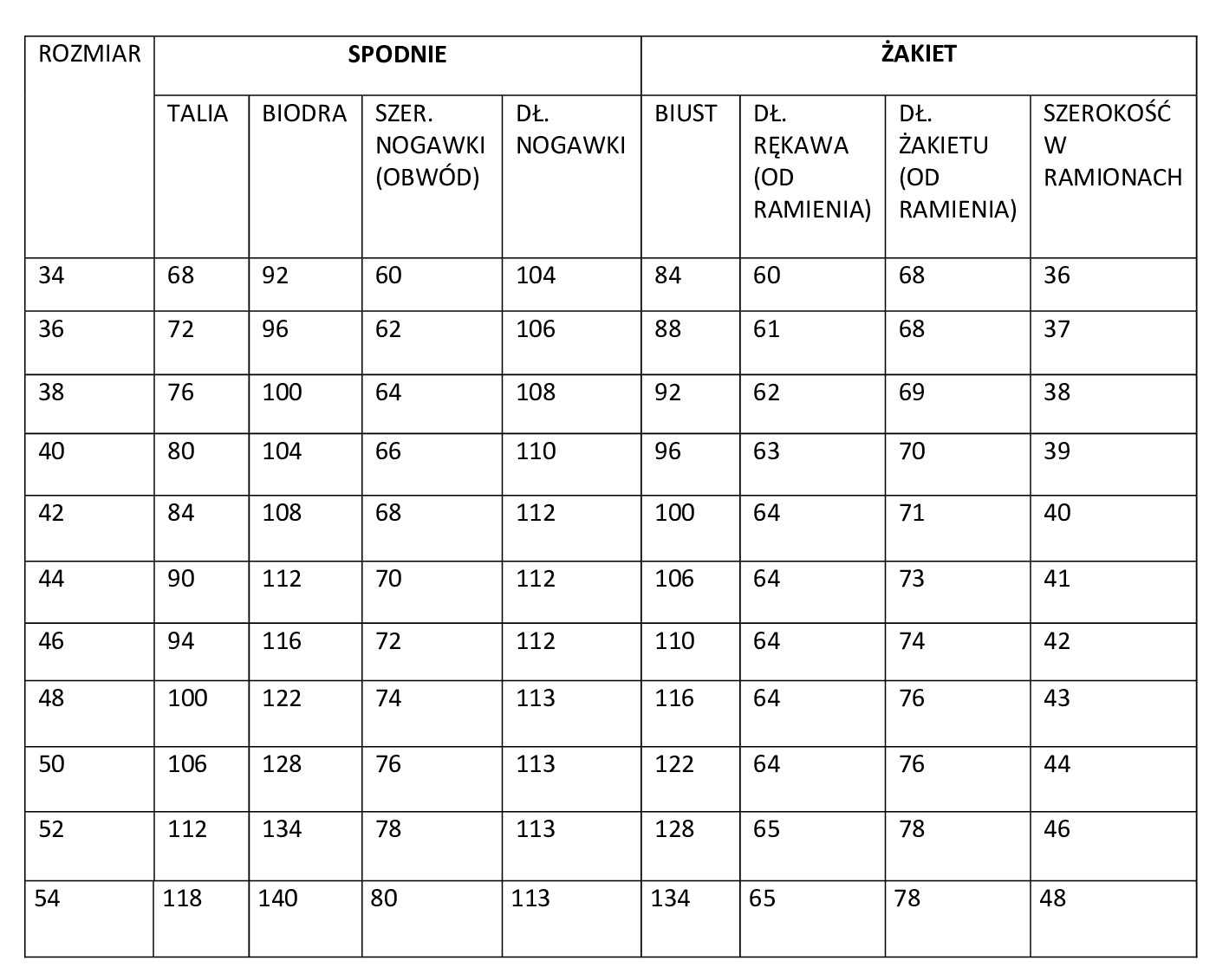 Rozmiar | 34, 36, 38, 40, 42, 44, 46, 48, 50, 52, 54 |