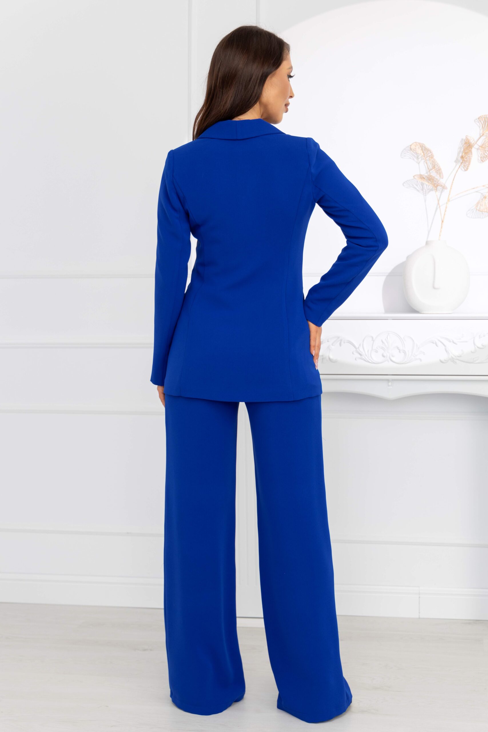 Garnitur damski – zestaw żakietu i spodni, który warto mieć w swojej szafie. Żakiet o bardzo ciekawym, wydłużonym kroju wspaniale wysmukla sylwetkę. Idealnie komponuje się ze spodniami o szalenie modnych, szerokich nogawkach. Wysokiej jakości materiał PREMIUM sprawia, że garnitur idealnie układa się na sylwetce !
