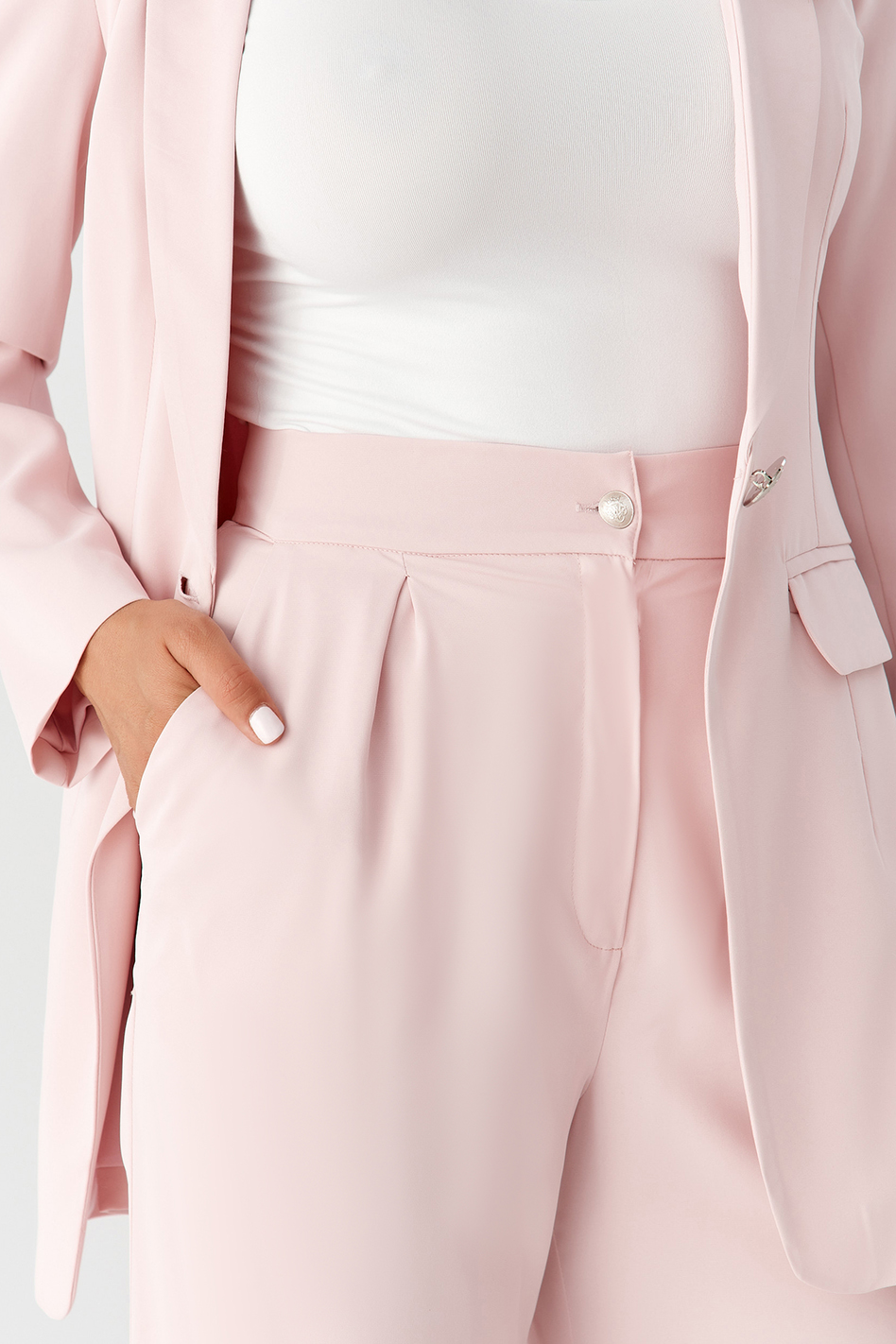 Garnitur damski (szeroka prosta nogawka) – pudrowy róż