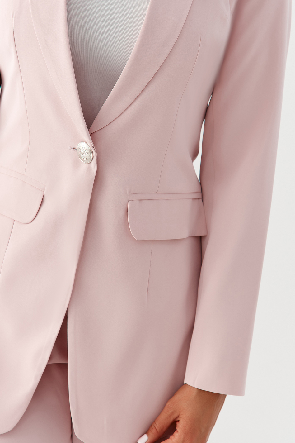 damski garnitur pudrowy róż