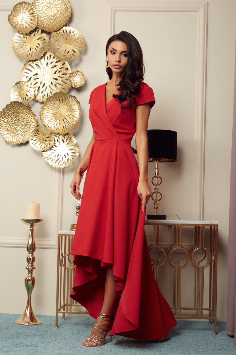 SELENA – to sukienka wieczorowa o niebywale ciekawym  i niepowtarzalnym kroju. To idealny przykład sukienki na wesele. Fantastycznie eksponuje kobiece atuty, jednocześnie tuszując drobne niedoskonałości. Asymetryczny dół to zdecydowany mocny punkt tej sukienki . Sprawia, że jest ona  niepowtarzalna i jedyna w swoim rodzaju. Świetnie zaprojektowany dekolt sprawia, że biust prezentuje się niezwykle atrakcyjnie, natomiast wcięcie w tali i luźno puszczone biodra wysmuklają sylwetkę, i sprawiają, że wygląda ona bardzo zgrabnie. Ten model sukienki  jest idealny dla kobiet, które chcą zakryć swoje biodra i uda i gdy wymiary biustu i bioder nie pokrywają się idealnie z wymiarami z tabeli. Dekolt w formie koperty powoduje, że model tej sukienki będzie wyglądał świetnie zarówno w przypadku nieco większego, jak i mniejszego biustu niż ten, który  podany jest w tabeli. Sukienka pomieści znacznie większe bioderka niż te podane w tabeli.