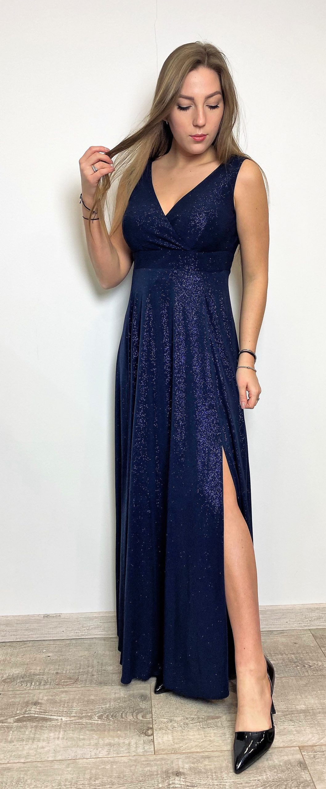 ANITA z brokatem – to sukienka wieczorowa o  ciekawym  i niepowtarzalnym kroju. To idealny przykład sukienki na wesele. Fantastycznie eksponuje kobiece wdzięki, jednocześnie tuszując drobne niedoskonałości. Wcięcie w talii i luźno puszczone biodra  wysmuklają sylwetkę, i sprawiają, że wygląda ona zgrabnie, zapewniając przy tym niezwykłą wygodę noszenia. Rozcięcie z przodu dodaje jej zwiewności i lekkości. Dużym atutem tej sukienki jest materiał z najmodniejszym w tym sezonie brokatem! To zdecydowanie bardzo modna sukienka. Dzięki swej finezji i niepowtarzalności ANITA  jest idealna jako sukienka na wesele. Świetnie się sprawdzi jako suknia wieczorowa, na mniejsze lub większe przyjęcia, bale karnawałowe, czy jako sukienka na studniówkę. Będziesz w niej wyglądać wytwornie i z pewnością olśnisz wszystkich wokół.