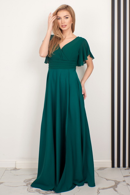 Połączenie zwiewnego szyfonu i gładkiego materiału sprawia, że jest to jednocześnie sukienka elegancka, jak również bardzo delikatna. Świetnie zaprojektowany dekolt sprawia, że biust prezentuje się niezwykle atrakcyjnie, natomiast wcięcie pod biustem i luźno puszczone biodra wysmuklają sylwetkę, i sprawiają, że wygląda ona bardzo zgrabnie. Wysokiej jakości gładki materiał to klasyczna baza, podczas gdy szyfon dodaje lekkości i romantycznego uroku. Nasza Laura to harmonijne połączenie klasyki i nowoczesności, tworzące niezapomniany look dla kobiety w każdym wieku. Niezwykle eteryczna, długa sukienka, idealnie się sprawdzi jako sukienka na wesele, poprawiny jak również jako kreacja dla druhen czy mam weselnych.