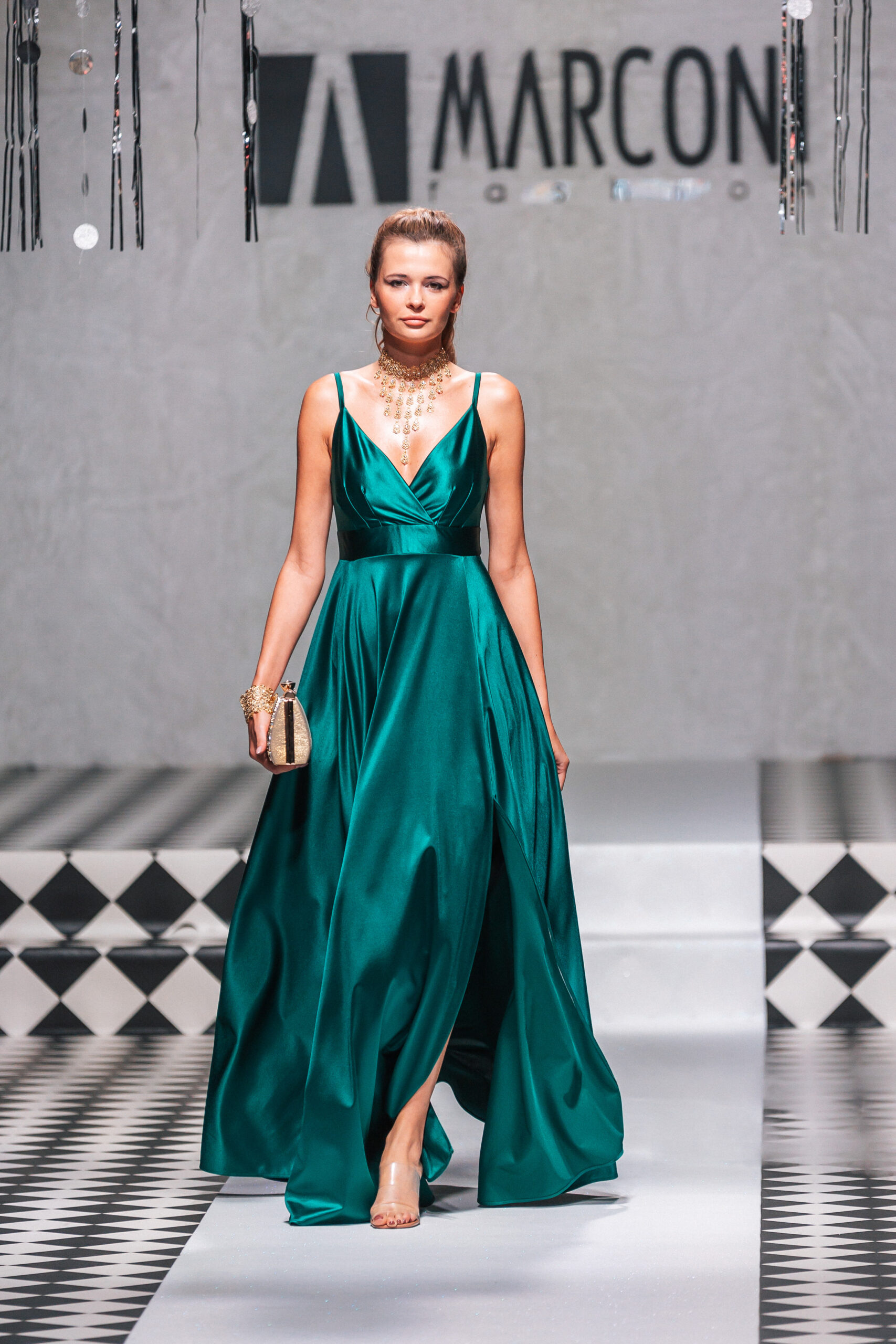 To idealny przykład sukienki na wesele. Fantastycznie eksponuje kobiece wdzięki, jednocześnie tuszując drobne niedoskonałości. Wcięcie pod biustem i luźno puszczone biodra  wysmuklają sylwetkę, i sprawiają, że wygląda ona zgrabnie, zapewniając przy tym niezwykłą wygodę noszenia. Rozcięcie na nodze oraz cienkie, regulowane ramiączka dodają jej zwiewności i lekkości.