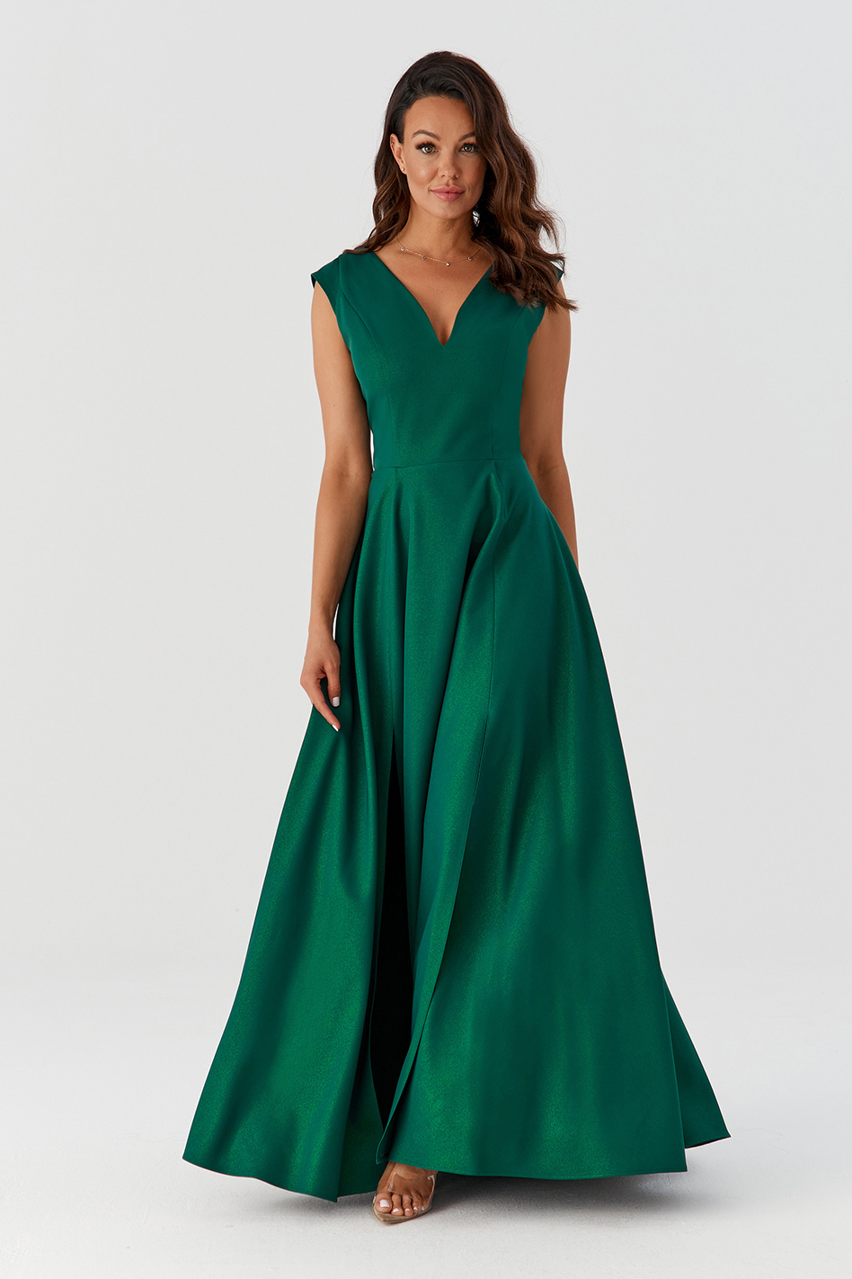 MILENA – to sukienka wieczorowa, która podbiła serca kobiet w różnym wieku. To idealny przykład sukienki na wesele. Fantastycznie eksponuje kobiece wdzięki, jednocześnie tuszując drobne niedoskonałości. Wcięcie w tali i luźno puszczone biodra wysmuklają sylwetkę, i sprawiają, że wygląda ona zgrabnie, zapewniając przy tym niezwykłą wygodę noszenia. Dwa rozcięcia z przodu dodają jej zwiewności i lekkości. Dużym atutem tej sukienki jest wysokiej jakości materiał z mieniącymi się drobinkami, co podkreśla jej wizytowy charakter. Drobinki wspaniale połyskują, ale co ważne nie sypią się! Nie jest to brokat. To zdecydowanie bardzo modna sukienka. Dzięki swej finezji i niepowtarzalności MILENA jest idealna jako sukienka na wesele. Świetnie się sprawdzi jako suknia wieczorowa, na mniejsze lub większe przyjęcia, bale karnawałowe, czy jako sukienka na studniówkę. Będziesz w niej wyglądać wytwornie i z pewnością olśnisz wszystkich wokół.
