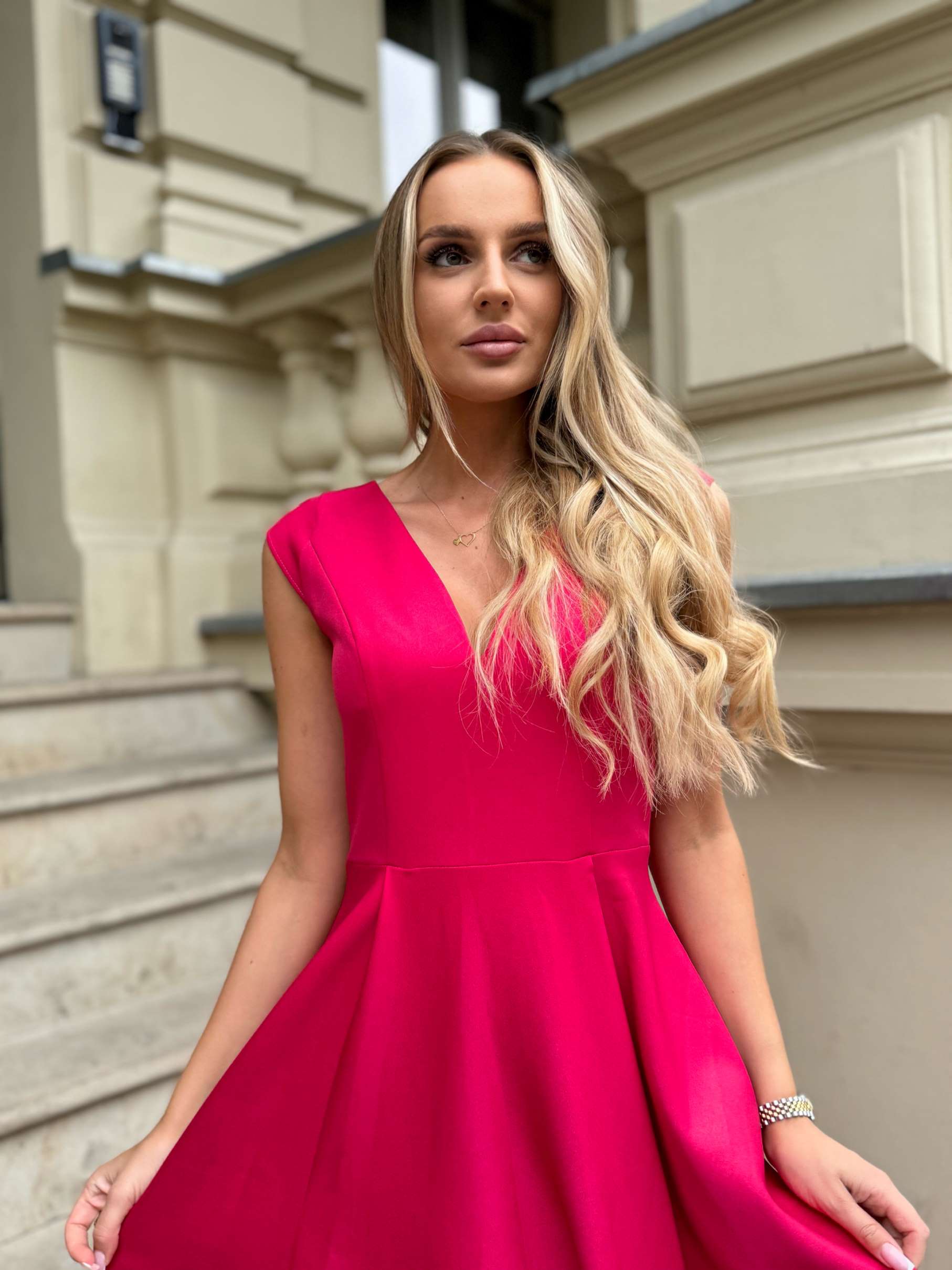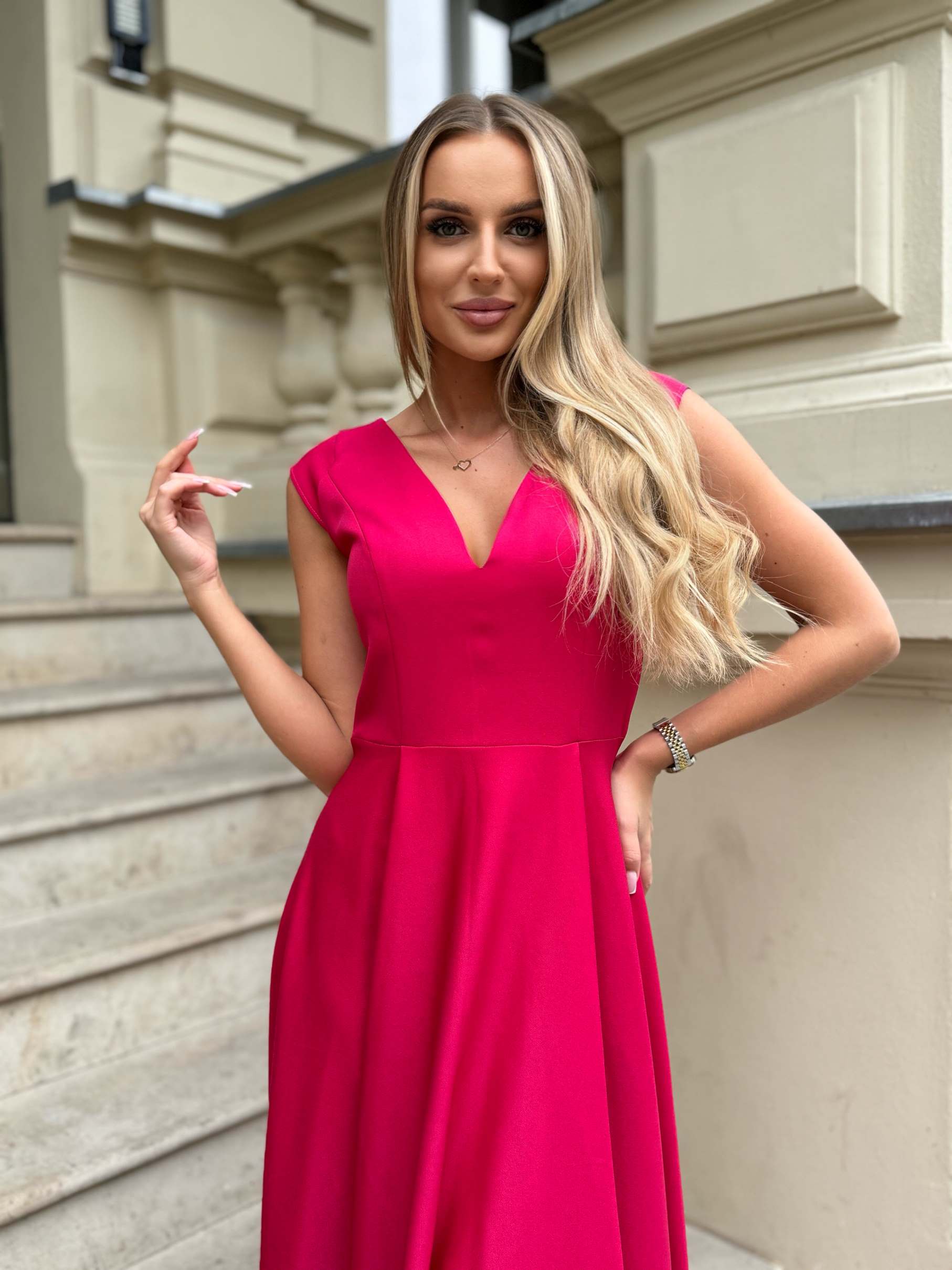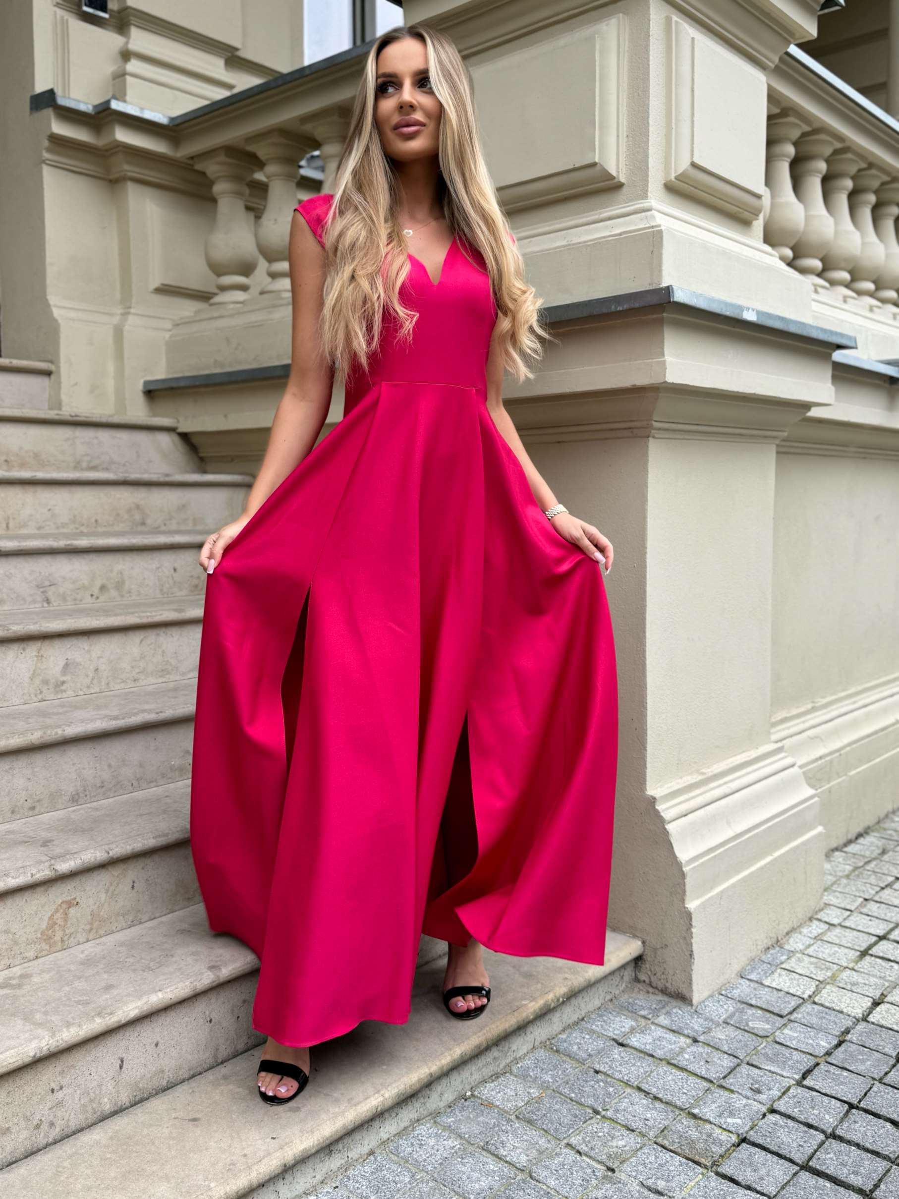 MILENA – to sukienka wieczorowa, która podbiła serca kobiet w różnym wieku. To idealny przykład sukienki na wesele. Fantastycznie eksponuje kobiece wdzięki, jednocześnie tuszując drobne niedoskonałości. Wcięcie w tali i luźno puszczone biodra wysmuklają sylwetkę, i sprawiają, że wygląda ona zgrabnie, zapewniając przy tym niezwykłą wygodę noszenia. Dwa rozcięcia z przodu dodają jej zwiewności i lekkości. Dużym atutem tej sukienki jest wysokiej jakości materiał z mieniącymi się drobinkami, co podkreśla jej wizytowy charakter. Drobinki wspaniale połyskują, ale co ważne nie sypią się! Nie jest to brokat. To zdecydowanie bardzo modna sukienka. Dzięki swej finezji i niepowtarzalności MILENA jest idealna jako sukienka na wesele. Świetnie się sprawdzi jako suknia wieczorowa, na mniejsze lub większe przyjęcia, bale karnawałowe, czy jako sukienka na studniówkę. Będziesz w niej wyglądać wytwornie i z pewnością olśnisz wszystkich wokół.