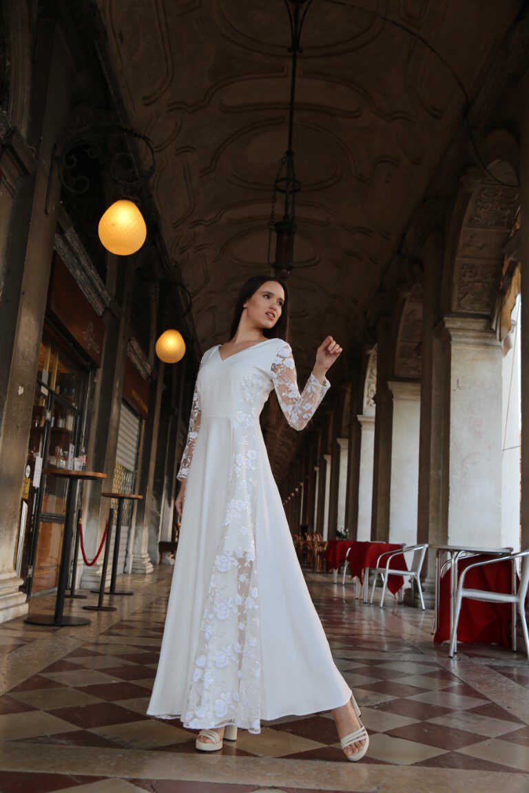 To idealna suknia ślubna dla kobiet ceniących urok misternej koronki, jak i swobodę noszenia.