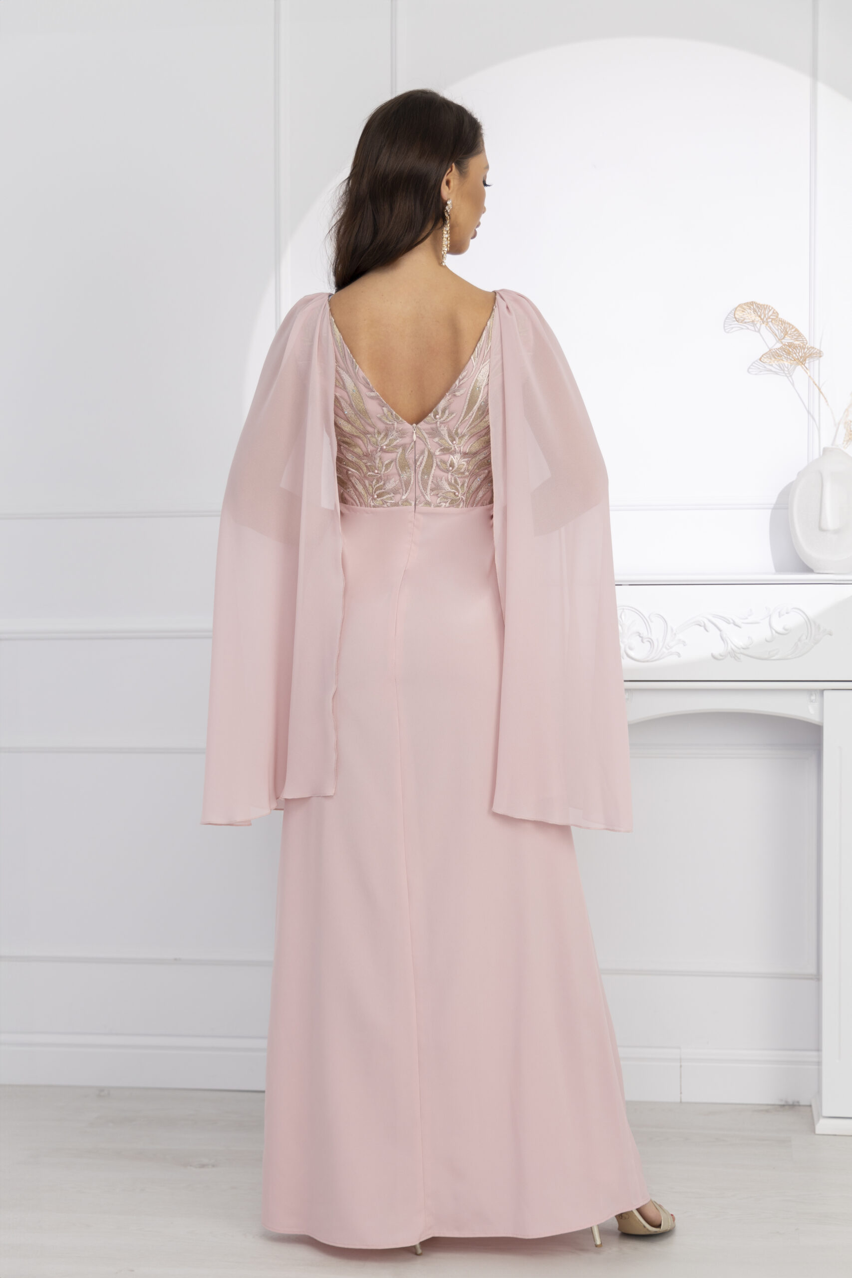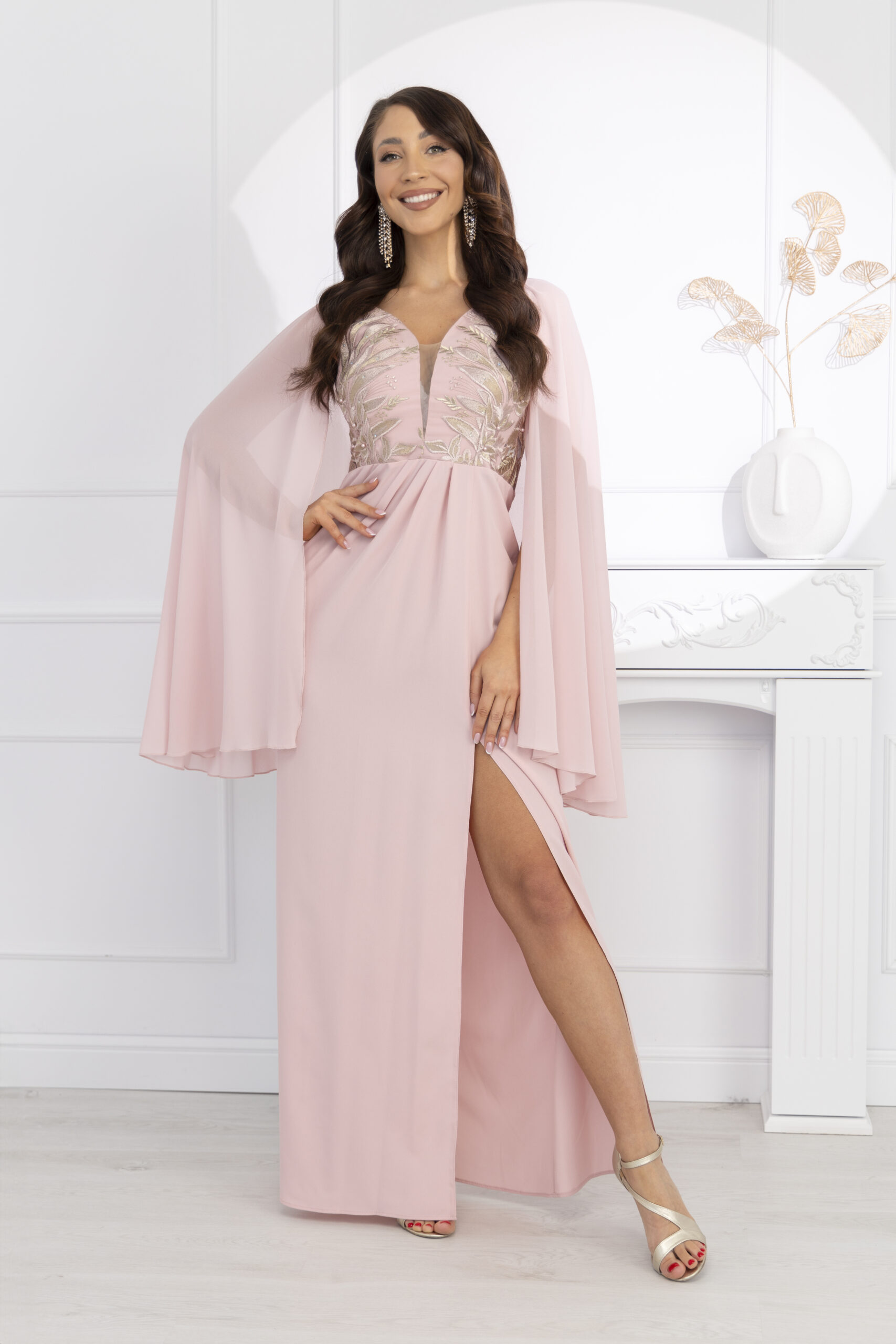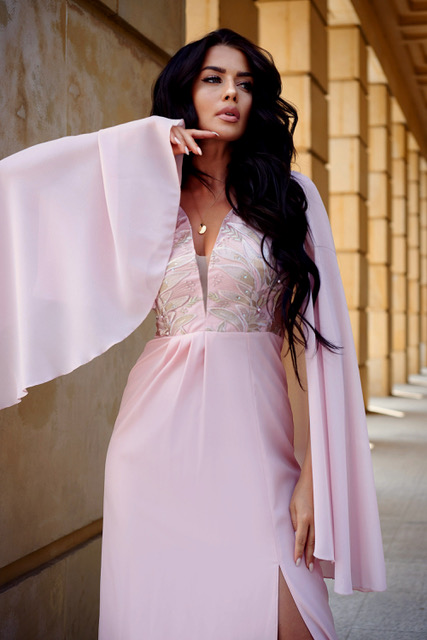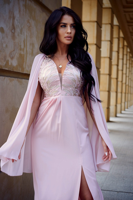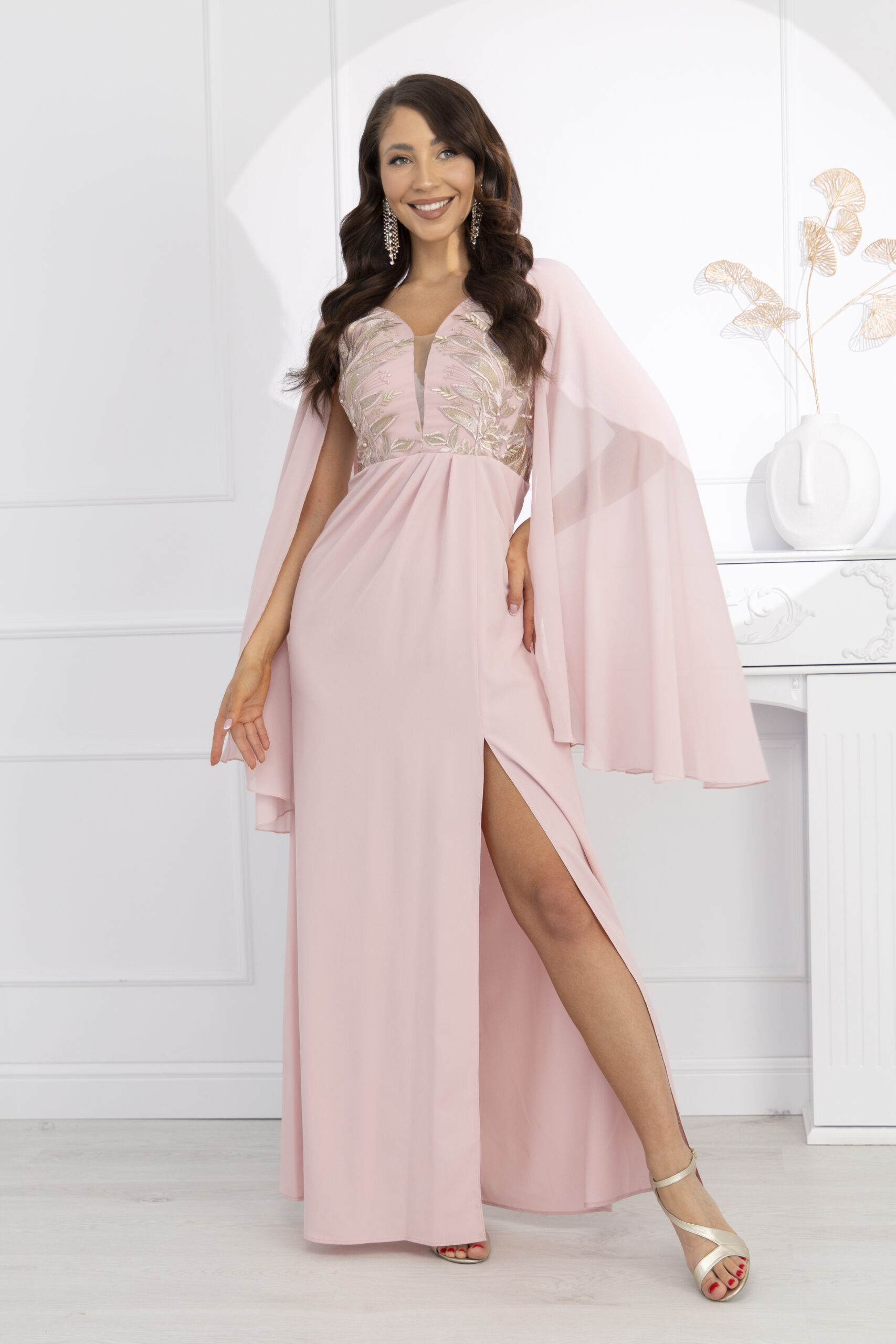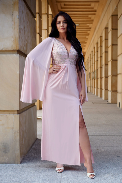 Niezwykle romantyczna, długa sukienka, idealnie się sprawdzi jako sukienka na poprawiny jak również jako suknia dla mamy weselnej. Pozwól tej sukni wnieść do Twojego ślubnego dnią nutę subtelnej piękności, sprawiając, że stanie się on jeszcze bardziej wyjątkowy.