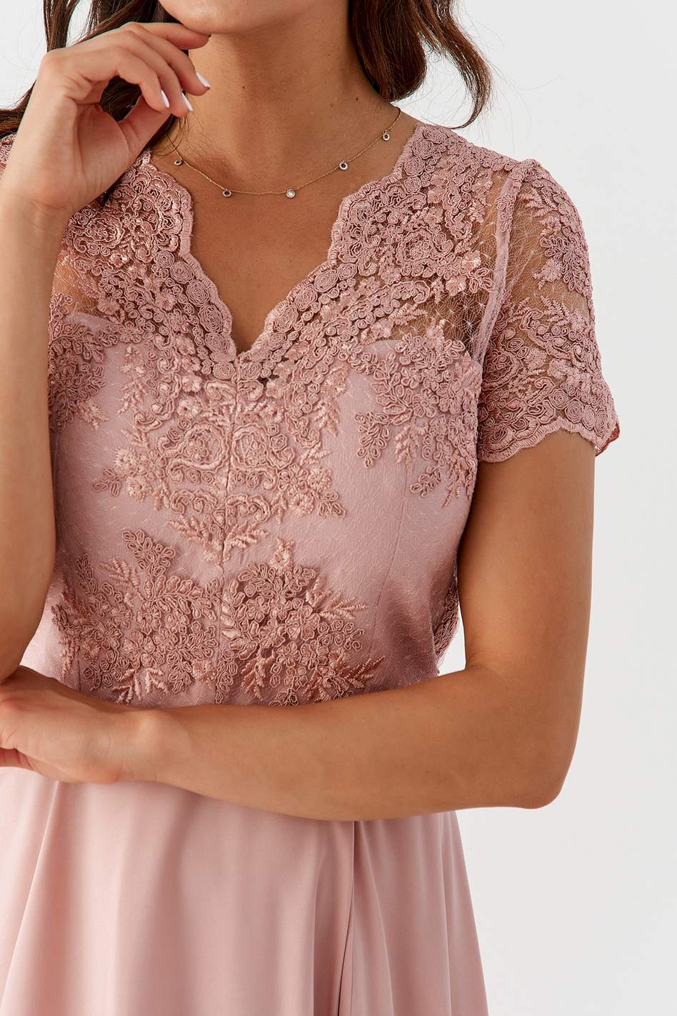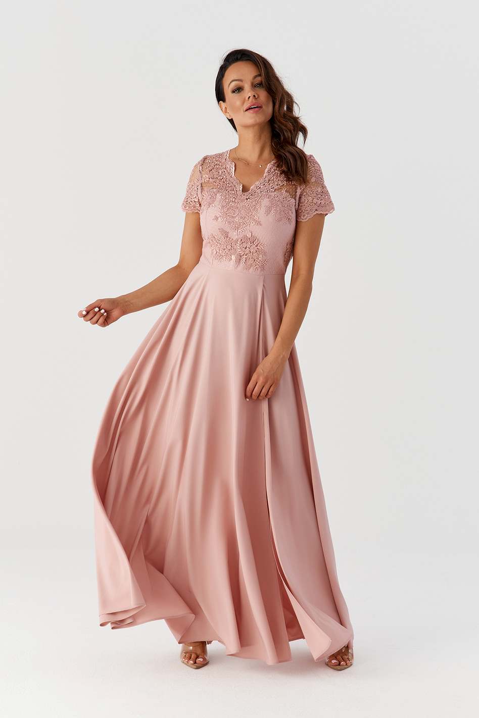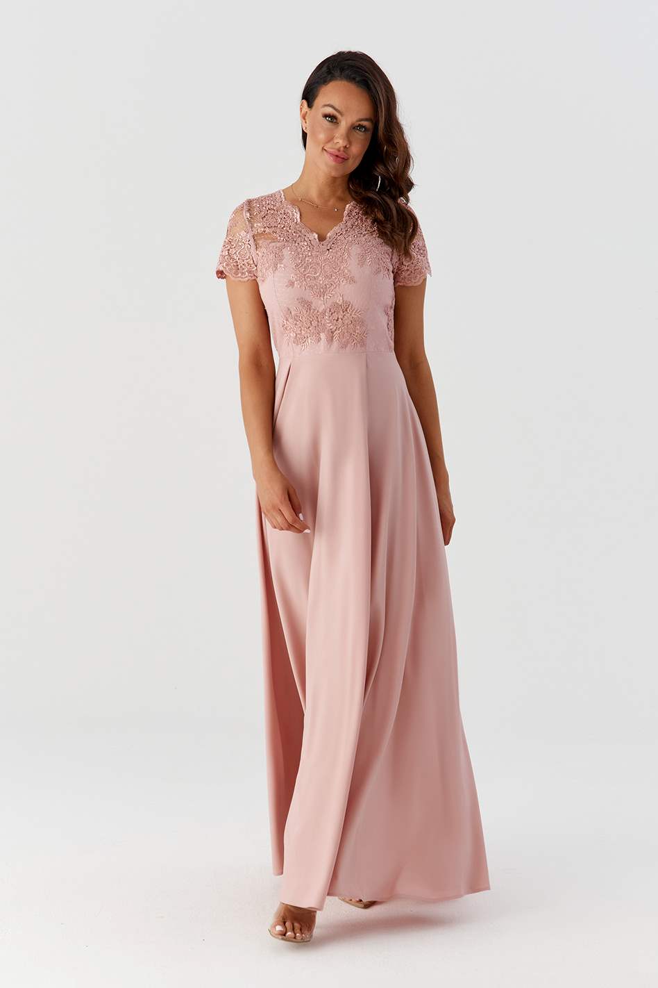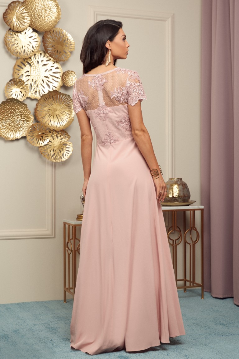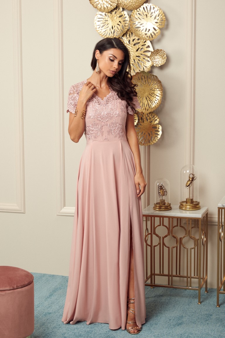 Niezwykle romantyczna, długa sukienka, idealnie się sprawdzi jako sukienka na poprawiny, jak również jako kreacja dla druhen czy mam weselnych.