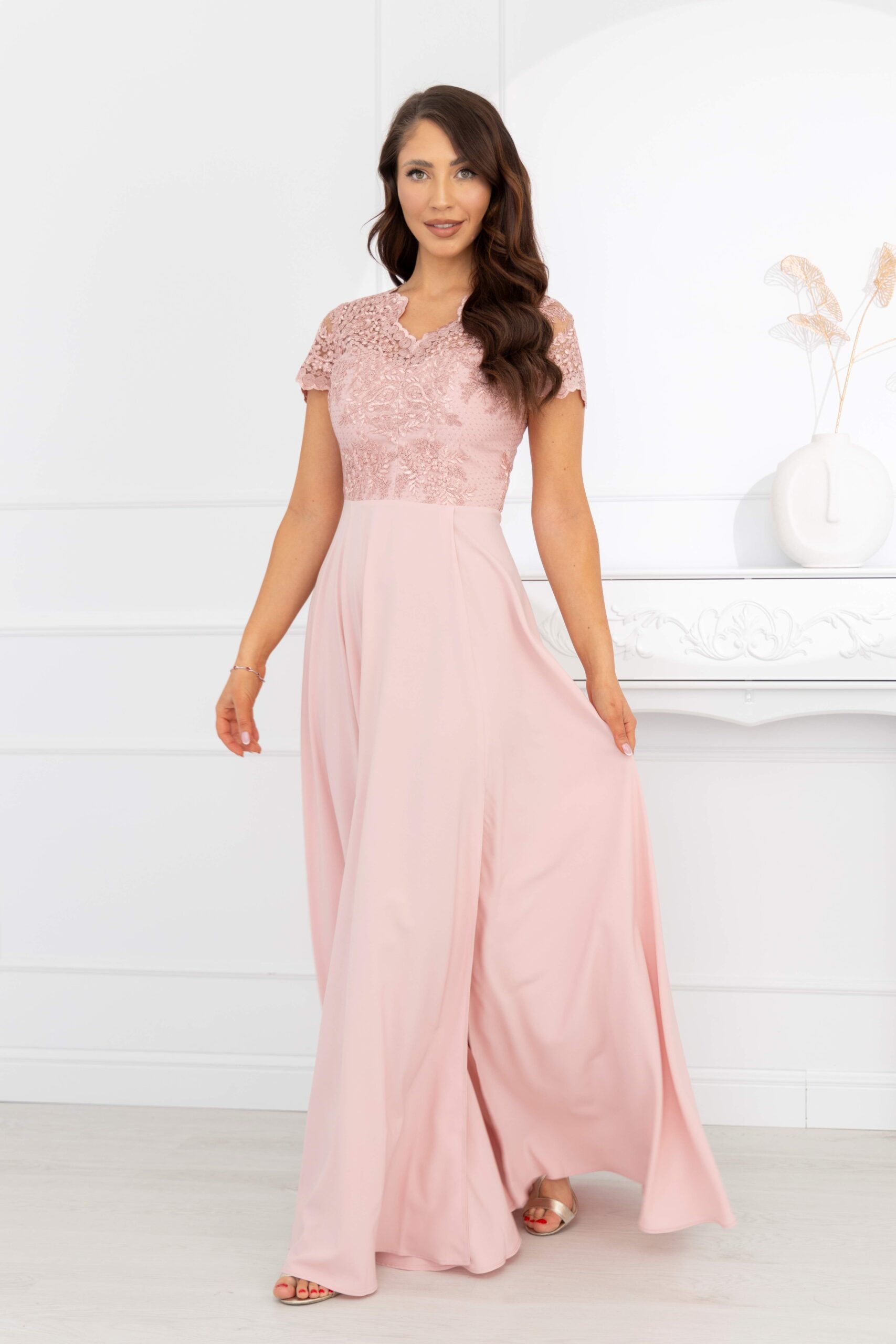 Pozwól tej sukni wnieść odrobinę subtelnej piękności, sprawiając, że dzień, w którym ją założysz stanie się naprawdę wyjątkowy.