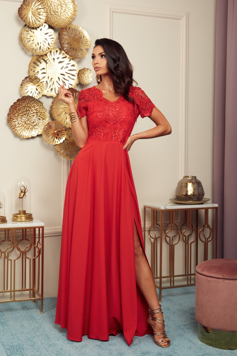 Zestawienie ponadczasowej koronki z delikatną tkaniną to niezapomniany look dla pań w różnym wieku. Dopasowana góra, i luźno puszczone biodra tworzą bardzo atrakcyjną całość. Zmysłowe rozcięcie na nodze nadaje jej lekkości i zwiewności, zapewniając przy tym niezwykłą swobodę noszenia.