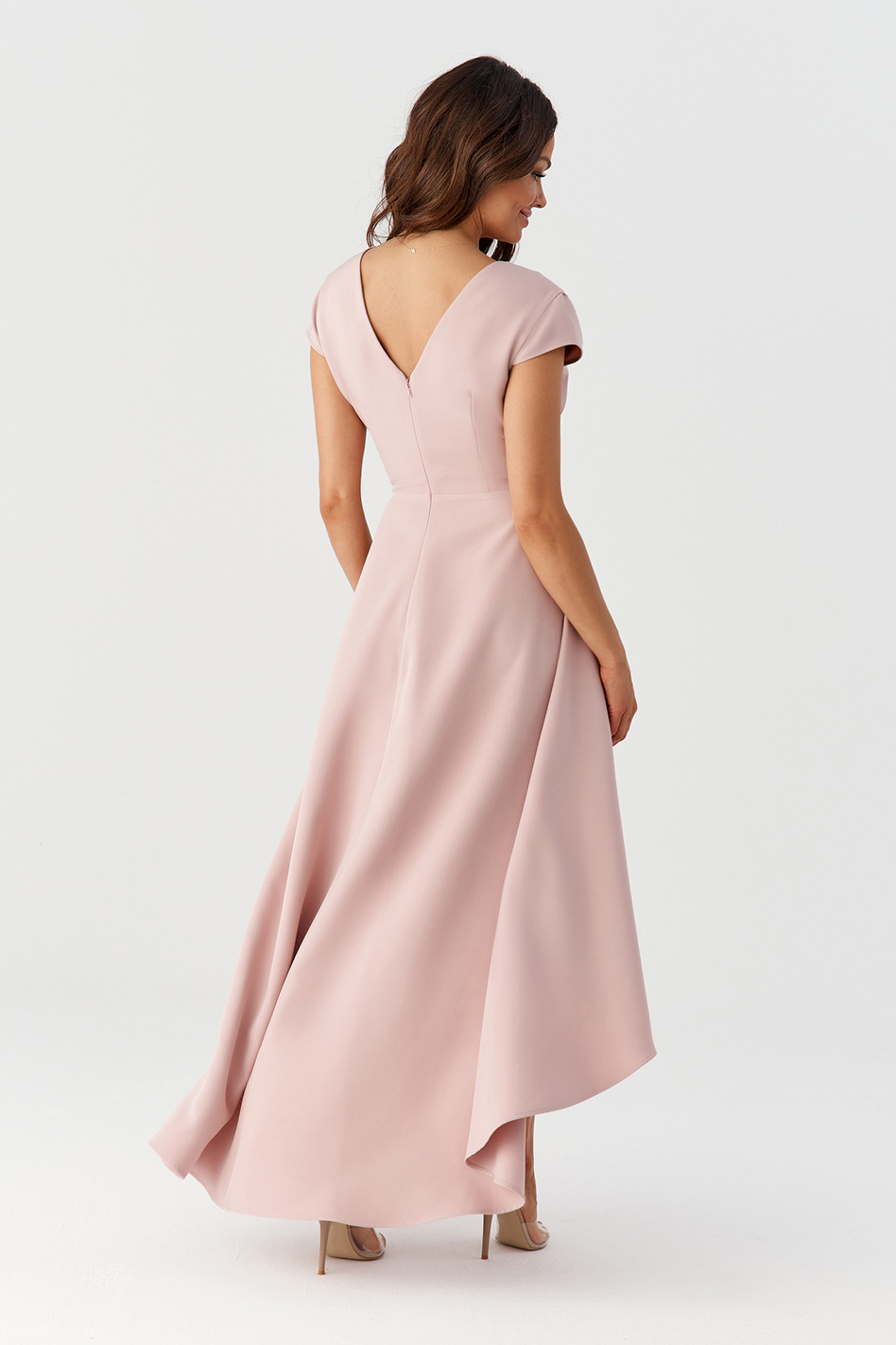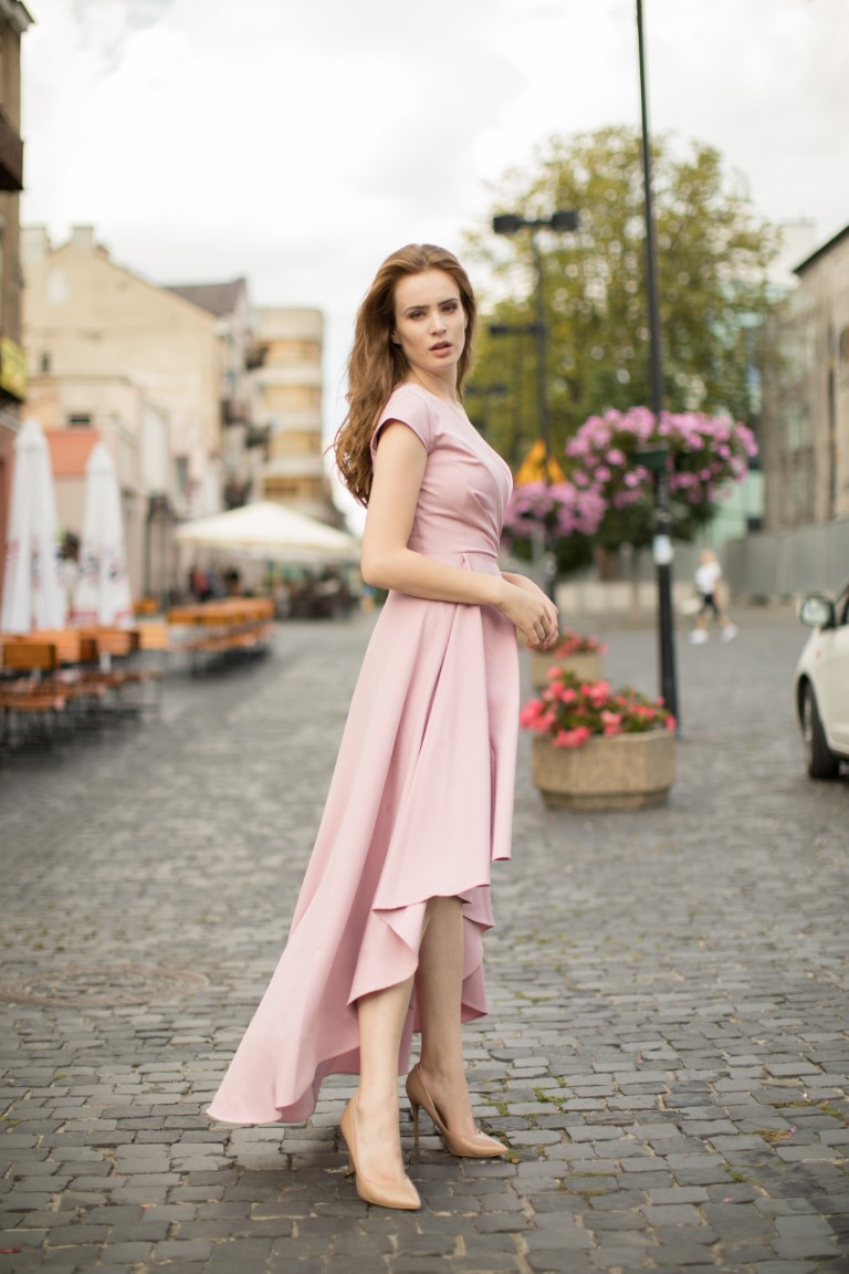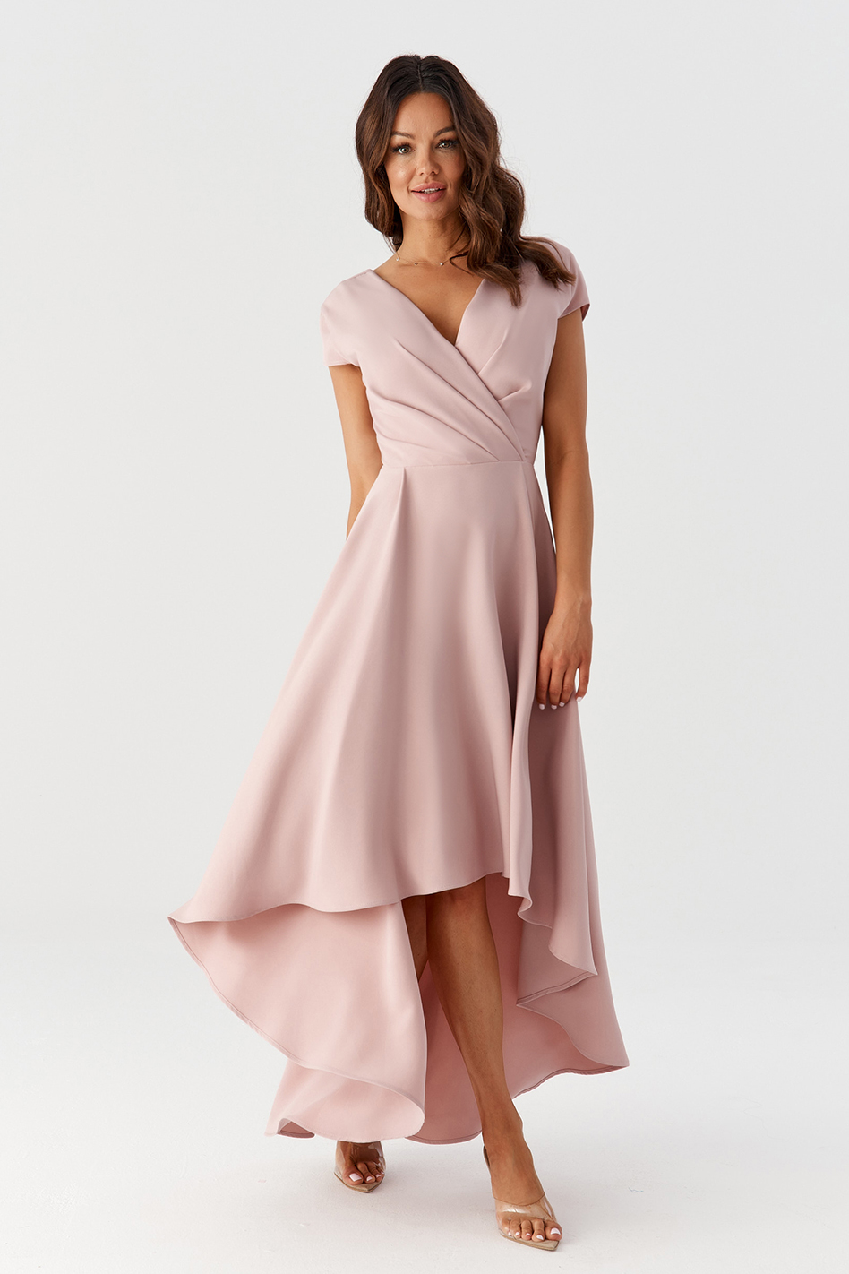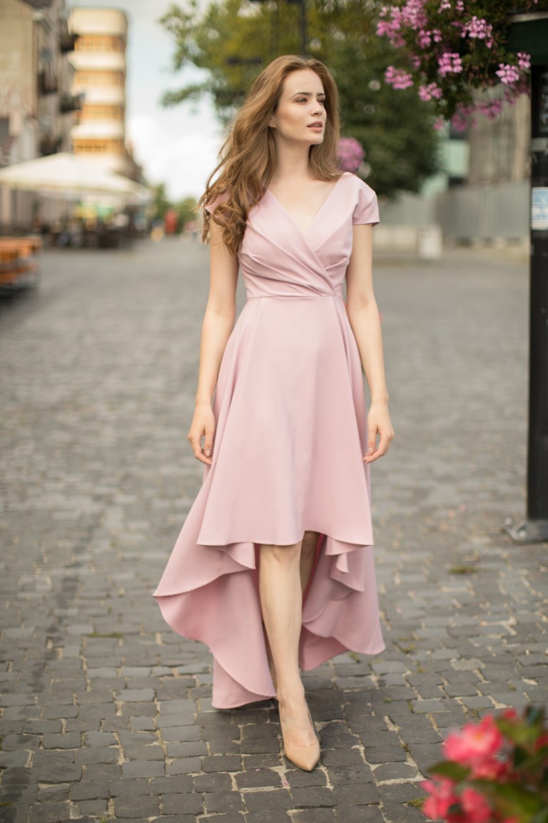 SELENA – to sukienka wieczorowa o niebywale ciekawym i niepowtarzalnym kroju. To idealny przykład sukienki na wesele. Fantastycznie eksponuje kobiece atuty, jednocześnie tuszując drobne niedoskonałości. Asymetryczny dół to zdecydowany mocny punkt tej sukienki . Sprawia, że jest ona niepowtarzalna i jedyna w swoim rodzaju.Świetnie zaprojektowany dekolt sprawia, że biust prezentuje się niezwykle atrakcyjnie, natomiast wcięcie w tali i luźno puszczone biodra wysmuklają sylwetkę, i sprawiają, że wygląda ona bardzo zgrabnie. Ten model sukienki jest idealny dla kobiet, które chcą zakryć swoje biodra i uda i gdy wymiary biustu i bioder nie pokrywają się idealnie z wymiarami z tabeli. Dekolt w formie koperty powoduje, że model tej sukienki będzie wyglądał świetnie zarówno w przypadku nieco większego, jak i mniejszego biustu niż ten, który podany jest w tabeli. Sukienka pomieści znacznie większe bioderka niż te podane w tabeli.