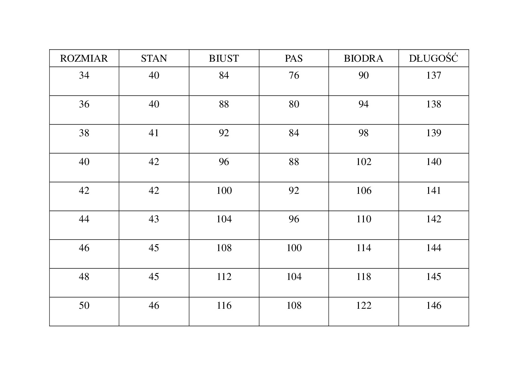 Rozmiar | 34, 36, 38, 40, 42, 44, 46, 48, 50 |